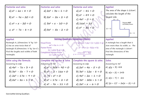 77 solve equations with square roots. Students will practice solving quadratic equations by factoring and, in the bonus problems, applying their knowledge to area of a rectangle. Home > math > algebra > quadratic functions > solving quadratic roots worksheets: Factorisation square root property completing the square using the quadratic formula. Attached is the google drive link for practice worksheets with key answer for your reference and class activities.